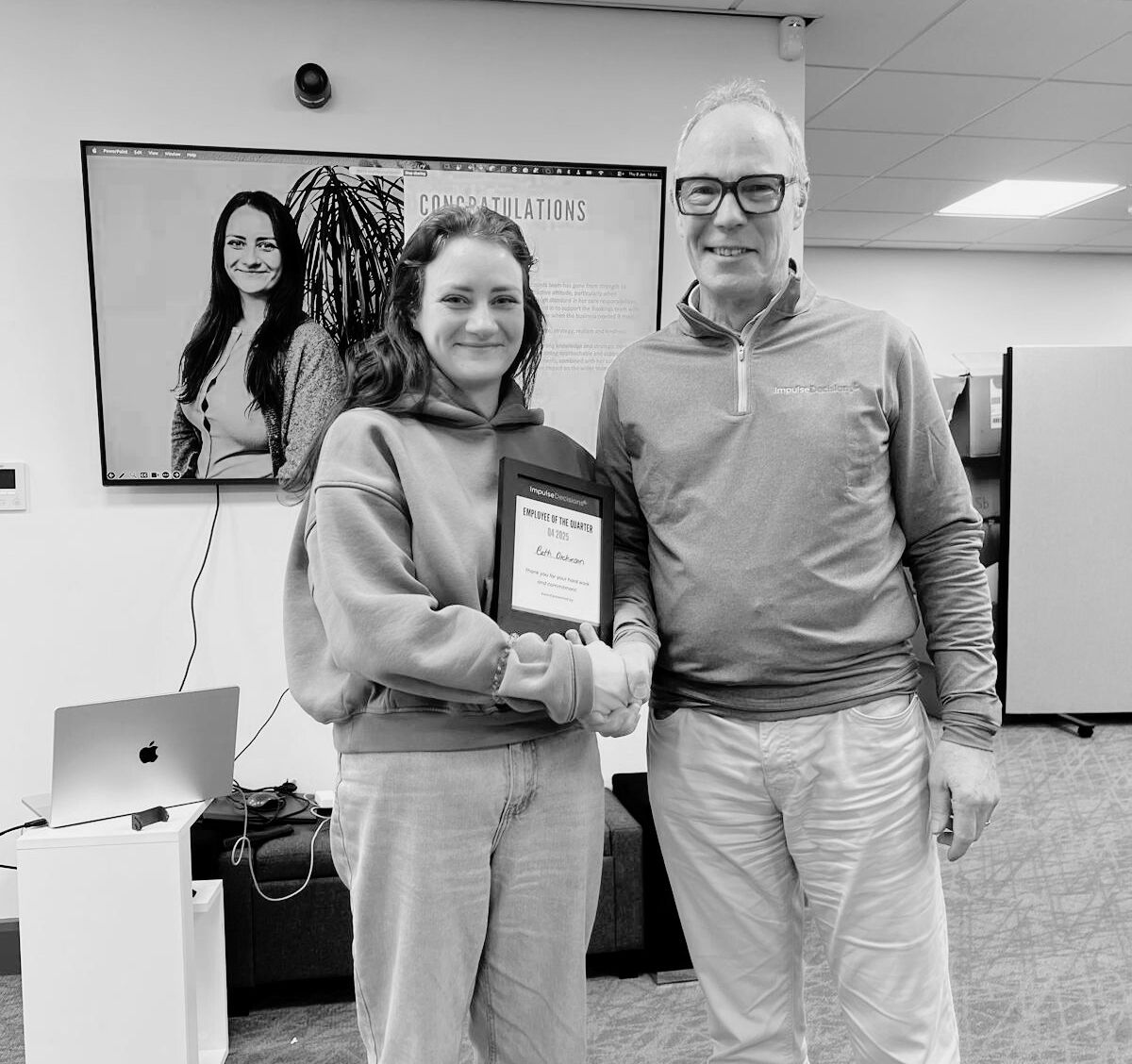 To be awarded the employee of the quarter for THIS quarter blew my mind. I wouldn’t see me as more deserving than anyone else in the company over Q4, I had a little bit of imposter syndrome. A real pinch me moment, I am so unbelievably grateful to work for a company who recognise and reward employees the way Impulse does.